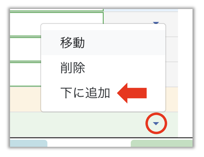 \(\Rightarrow\) 追加したいレコードの 一つ上のレコード 右側の ▼ ボタンを押し, 下に追加 をクリック