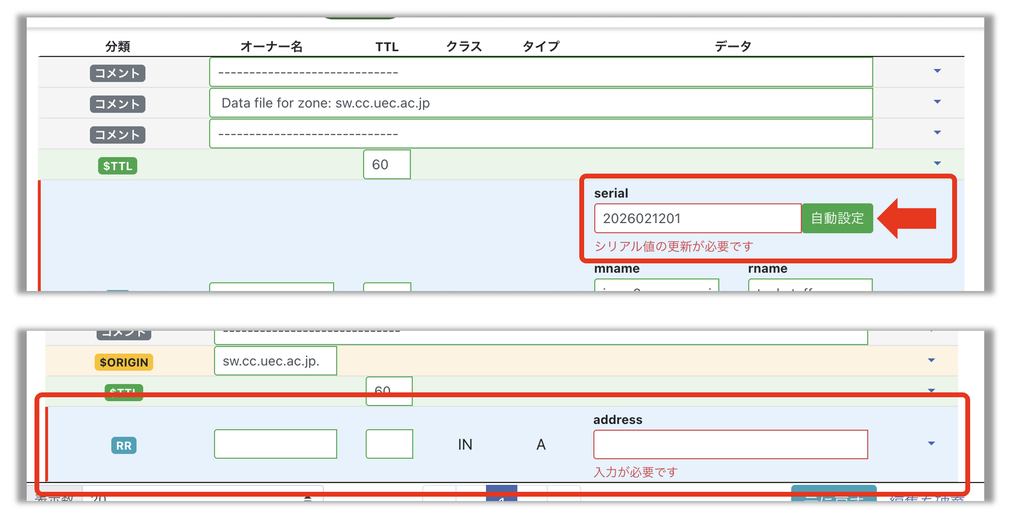 DNSレコード管理システム https://dns-editor.cc.uec.ac.jp/ 学内