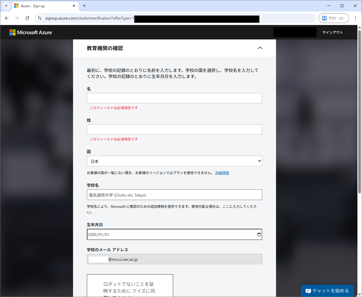 ソフトウェアを利用するには,Azure for Students へのサインアップが必要です.